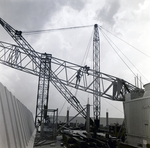 Gandy, George Skip IV, "Workers and Crane, Sims Service Removal on First Financial Tower, A" (1972). Gandy Photographs - Streets, Buildings, and Construction. Image 2682.