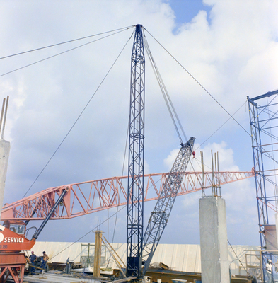 Gandy, George Skip IV, "Sims Service Crane on the First Financial Tower, D" (1972). Gandy Photographs - Streets, Buildings, and Construction. Image 2686.