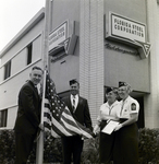 Gandy, George Skip IV, "American Flag outside of Florida Steel Location with American Legion Members, A" (1965). Gandy Photographs - Streets, Buildings, and Construction. Image 2701.