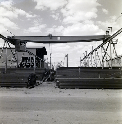 Gandy, George Skip IV, "Stacks of Material and Crane at Florida Steel Factory, B" (1965). Gandy Photographs - Streets, Buildings, and Construction. Image 2782.