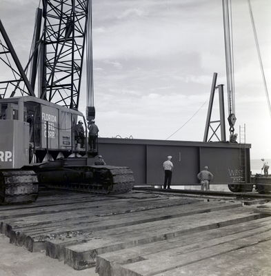 Gandy, George Skip IV, "Florida Steel Crane Carrying Steel Beam at Westinghouse Electric, B" (1965). Gandy Photographs - Streets, Buildings, and Construction. Image 2789.