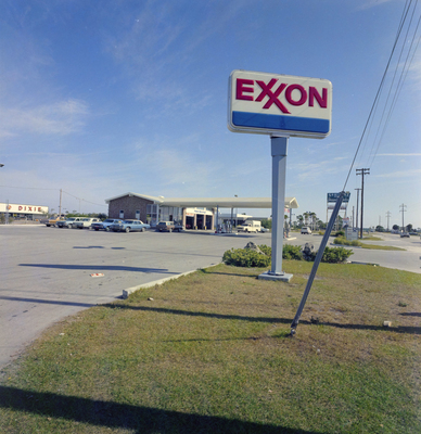 Gandy, George Skip IV, "Sign at Exxon Gas Station at Seminole Park Shopping Center" (1975). Gandy Photographs - Streets, Buildings, and Construction. Image 2857.
