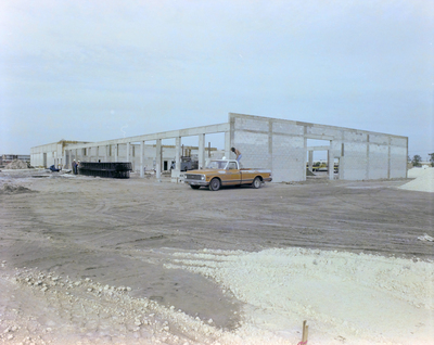 Gandy, George Skip IV, "Concrete Base of Garage during Construction, Ferman Chevrolet" (1977). Gandy Photographs - Streets, Buildings, and Construction. Image 2930.