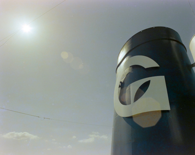 Gandy, George Skip IV, "Low Angle View of Gearbulk Logo on Pipe, Fillette Green" (1975). Gandy Photographs - Streets, Buildings, and Construction. Image 2990.