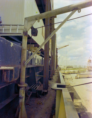 Gandy, George Skip IV, "Steel Beams and Shipping Pallets on M/V Kelkheim, Fillette Green, A" (1975). Gandy Photographs - Streets, Buildings, and Construction. Image 3017.
