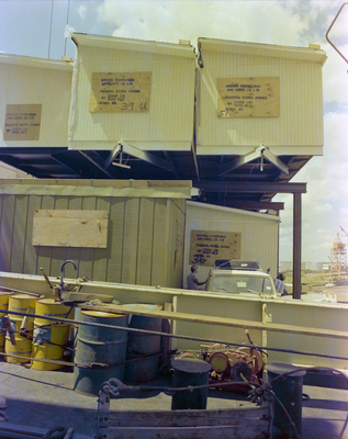 Gandy, George Skip IV, "Steel Beams and Shipping Pallets on M/V Kelkheim, Fillette Green, B" (1975). Gandy Photographs - Streets, Buildings, and Construction. Image 3018.