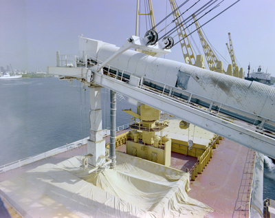 Machinery connected to a tarp on the World Agamemnon, docked at the Port of Tampa for Fillette Green.