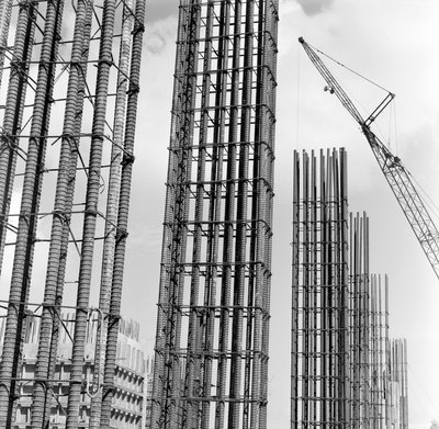 Gandy, George Skip IV, "Florida Steel Corporation Rebar Structure for First National Bank of Miami, C" (1970). Gandy Photographs - Streets, Buildings, and Construction. Image 3134.