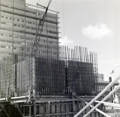 The First National Bank of Miami construction site with a rebar structure in Miami, Florida, photographed for Florida Steel Corporation.
