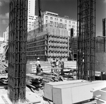 Gandy, George Skip IV, "Construction of First National Bank of Miami Using Rebar and Cranes, B" (1970). Gandy Photographs - Streets, Buildings, and Construction. Image 3155.