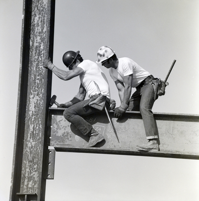 Florida Steel Corporation construction workers on-site during the construction of the First Financial Corporation Tower at 400 North Tampa Street in downtown Tampa, Florida, which is now known as the Park Tower.