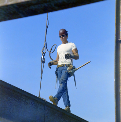 Gandy, George Skip IV, "Florida Steel Construction Workers at First Financial Tower Site, AR" (1972). Gandy Photographs - Streets, Buildings, and Construction. Image 3328.