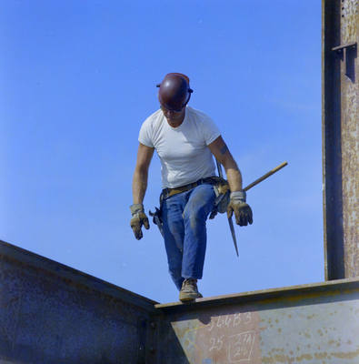 Gandy, George Skip IV, "Florida Steel Construction Workers at First Financial Tower Site, AW" (1972). Gandy Photographs - Streets, Buildings, and Construction. Image 3333.
