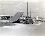 Gandy, George Skip IV, "Sheriff on Motorcycle Escorts Florida Steel Trailer, H" (1975). Gandy Photographs - Streets, Buildings, and Construction. Image 3540.