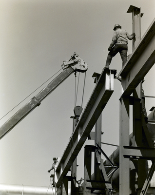 Gandy, George Skip IV, "Florida Steel Frame Lifted by Crane, A" (1975). Gandy Photographs - Streets, Buildings, and Construction. Image 3562.