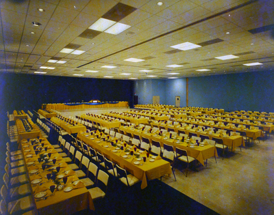 An interior shot of an event hall in the Hotel Floridan located at 905 North Florida Avenue in Tampa, Florida, circa 1970s.