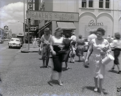 Gandy, George Skip IV, "People Walking along Franklin St, D" (1958). Gandy Photographs - Streets, Buildings, and Construction. Image 3911.