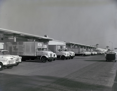 Gandy, George Skip IV, "Gray Advertising, Trucks at Maas Brothers" (1960). Gandy Photographs - Streets, Buildings, and Construction. Image 3935.