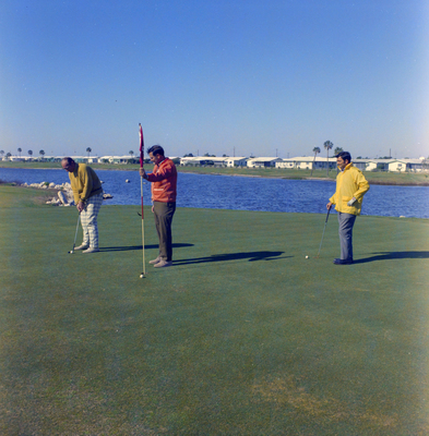 Gandy, George Skip IV, "Golfers Putting on Waterfront Green at Gulf Harbors, New Port Richey, D" (1970). Gandy Photographs - Streets, Buildings, and Construction. Image 4434.