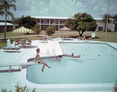 Gandy, George Skip IV, "Howard Johnson Motel East Pool, Color, B" (1950). Gandy Photographs - Streets, Buildings, and Construction. Image 4676.