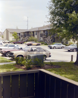 Gandy, George Skip IV, "Miller, McKendree, Parking in Front of Condominiums, A" (1985). Gandy Photographs - Streets, Buildings, and Construction. Image 6274.