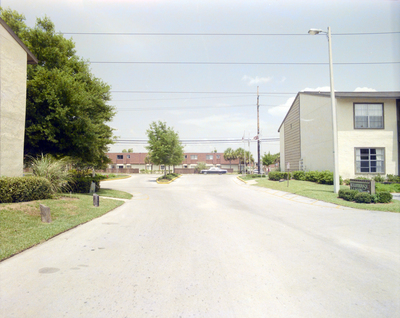 Gandy, George Skip IV, "Miller, McKendree, Entrance by the Clubhouse Leasing Office" (1985). Gandy Photographs - Streets, Buildings, and Construction. Image 6282.