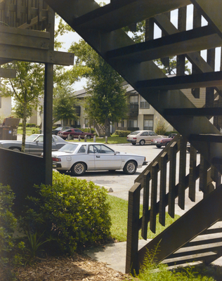 Gandy, George Skip IV, "Miller, McKendree, View of the Parking Lot from under the Stairs" (1985). Gandy Photographs - Streets, Buildings, and Construction. Image 6298.
