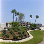 The entrance landscaping and signage for Mariners Pass Condominiums in St. Petersburg. Nearby construction activity and framing is visible behind the sign.