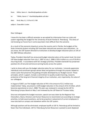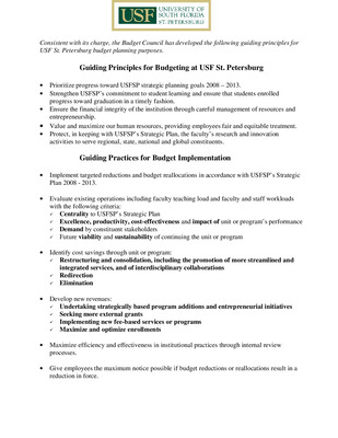 Summary, University of South Florida St. Petersburg Budget Reduction, May 23, 2008