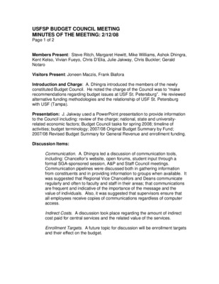 Minutes, University of South Florida St. Petersburg Budget Council, February 12, 2008