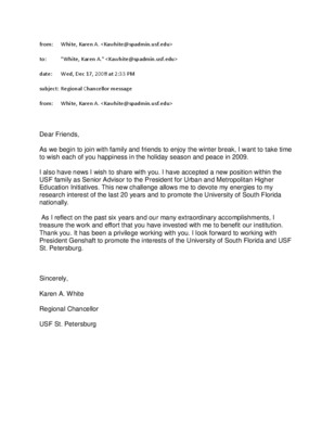 Email, Karen White to USF St. Petersburg Community, December 17, 2008